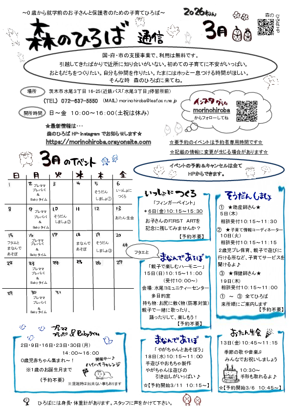 ・『☆ー月ー日から予約受付開始』と記載のあるイベントの時間中は、予約した親子だけがひろばに入れます。