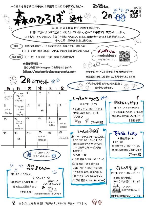 ・『☆ー月ー日から予約受付開始』と記載のあるイベントの時間中は、予約した親子だけがひろばに入れます。