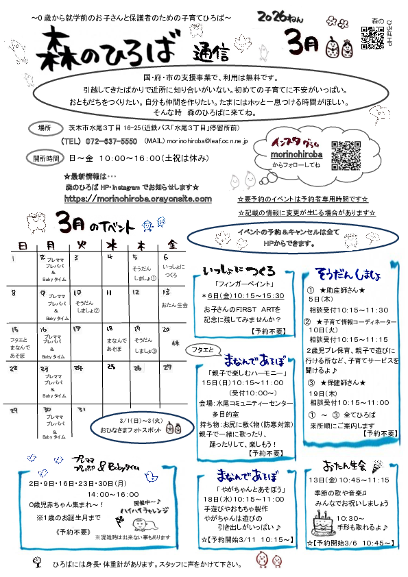 ・『☆ー月ー日から予約受付開始』と記載のあるイベントの時間中は、予約した親子だけがひろばに入れます。